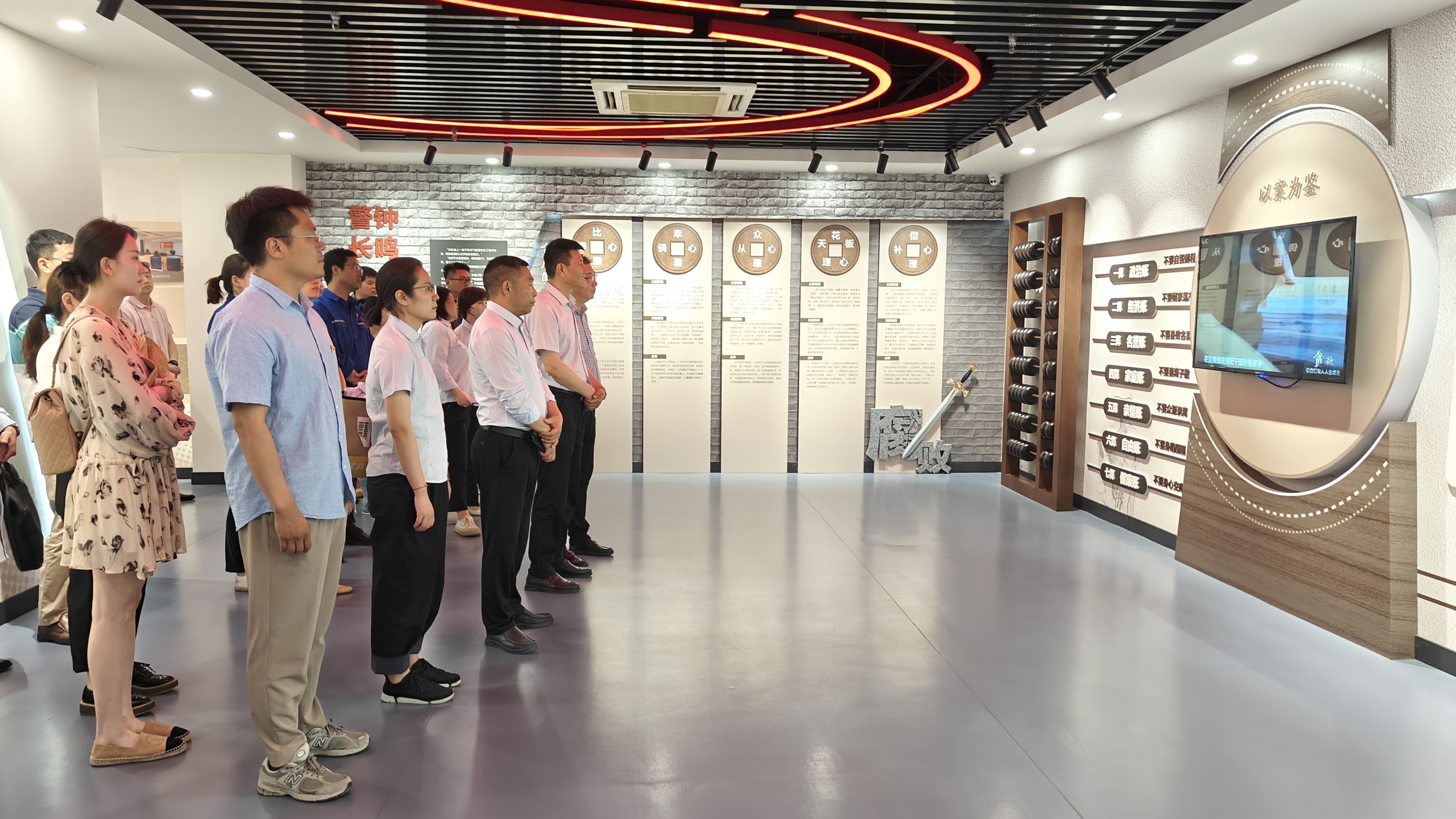 在法院讲解员的引导下,大家参观了薪火传承、长风破浪、党建引领、警钟长鸣等主题展厅。现场一幅幅图片、一段段忏悔实录和一个个鲜活的案例,大家认真聆听讲解员分析贪腐的五种心理和算算人生的七笔账,这一系列活动让党员们心灵上受到了洗礼,思想上受到了震撼,对照反思、吸取教训、再次敲响了拒腐防变、正风肃纪的警钟。