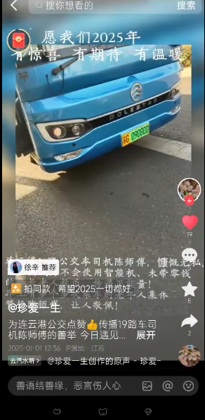 温馨关怀,温暖旅程。2月11日,抖音上一位女士上传了一段视频,对19路公交车司机陈辉的热心助人行为表达了赞扬。据了解,老年免费公交卡和老年优惠公交卡每年都需要进行年审,但一些老年乘客常常会忘记年审日期。未年审的乘车卡在使用时会发出“卡已过期,请投币”的提示音,导致老年乘客感到疑惑;由于他们使用的不是智能手机,有时又没携带零钱;在这样的情况下,陈辉总是面带微笑地安慰道:“别担心,您先上车坐好,我来帮您投币。”然后,他便用自己的手机为老人支付了2元的车费。这样的善举并非偶然,陈辉总是愿意自费帮助每一位需要帮助的老人。