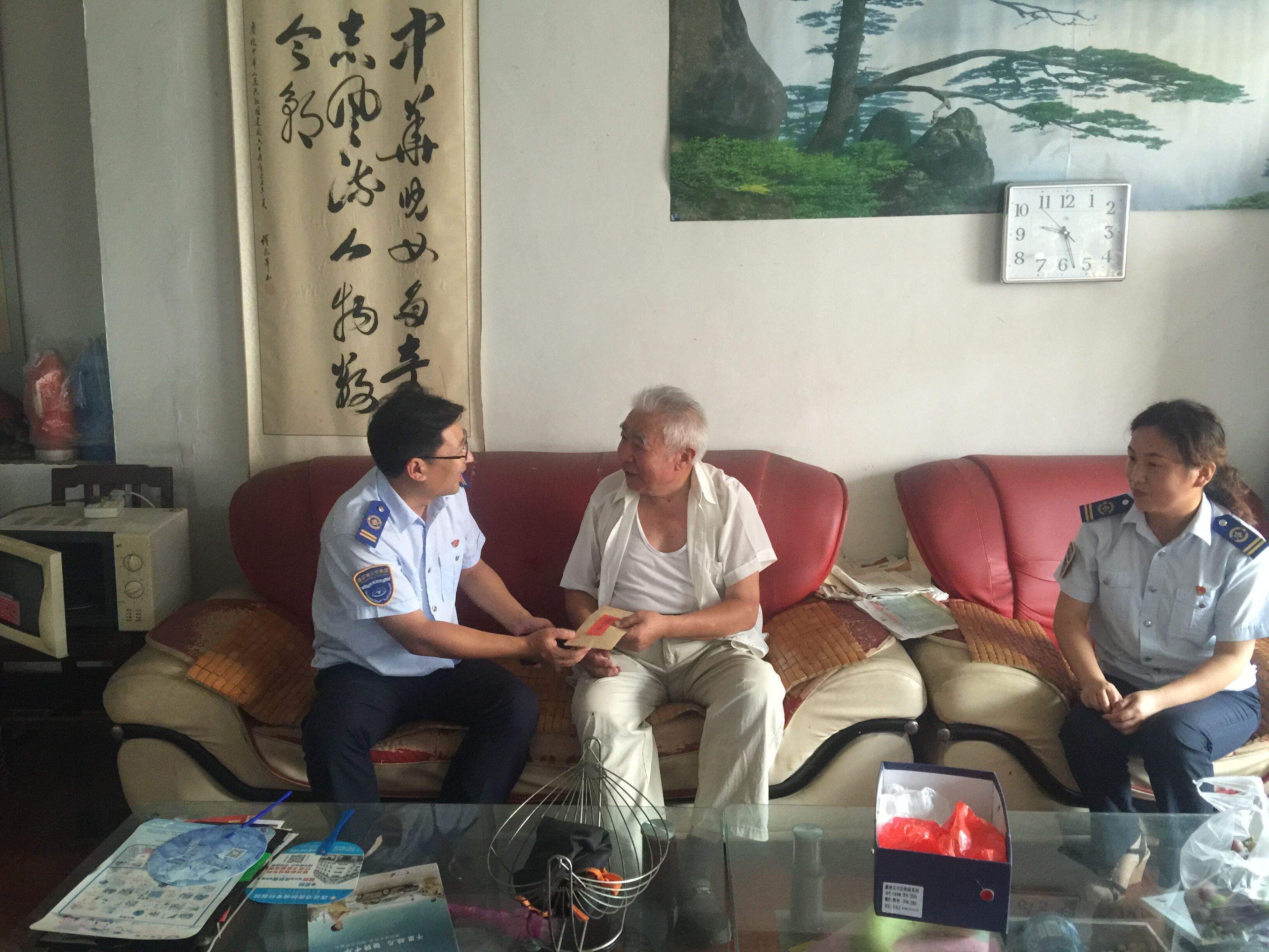 在老干部家中,慰问组一行人与他们进行了亲切的交谈,并关切的询问每一位老干部的身体及生活状态,希望他们在炎热夏季要注意防暑降温,保重身体,代表企业向他们致以节日的问候和良好的祝福,送上节日慰问金。同时,慰问组一行人也向老干部们汇报近年来公交的发展状况,感谢他们为公交发展作出的积极贡献。