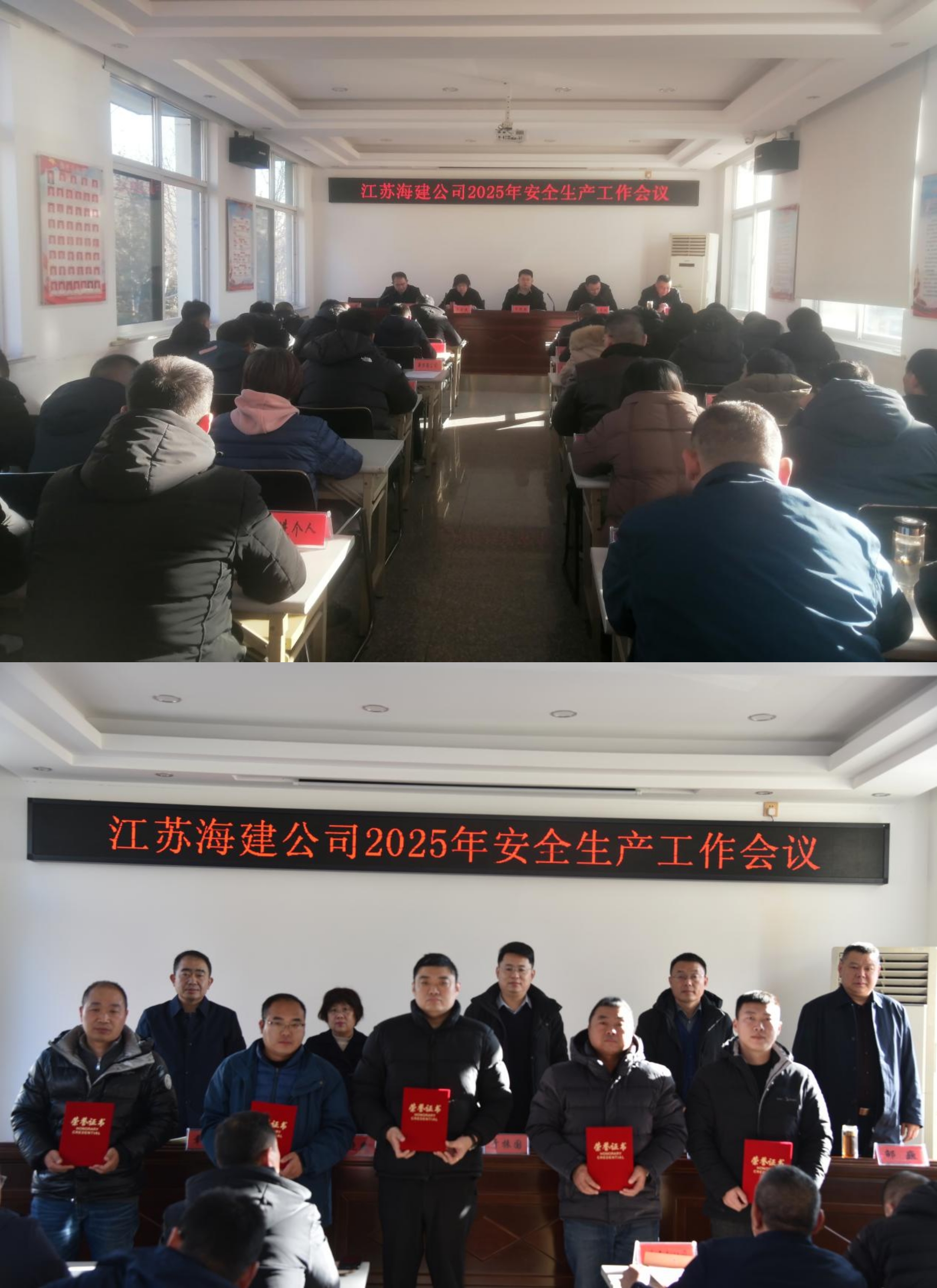 1月9日上午,江苏海建公司召开2025年安全生产工作会议。公司领导班子成员、各部门及各分(子)公司主要负责人、安全分管领导、安全生产先进班组代表、先进个人等共50余人参加会议。会议由公司总经理徐其翔主持。
