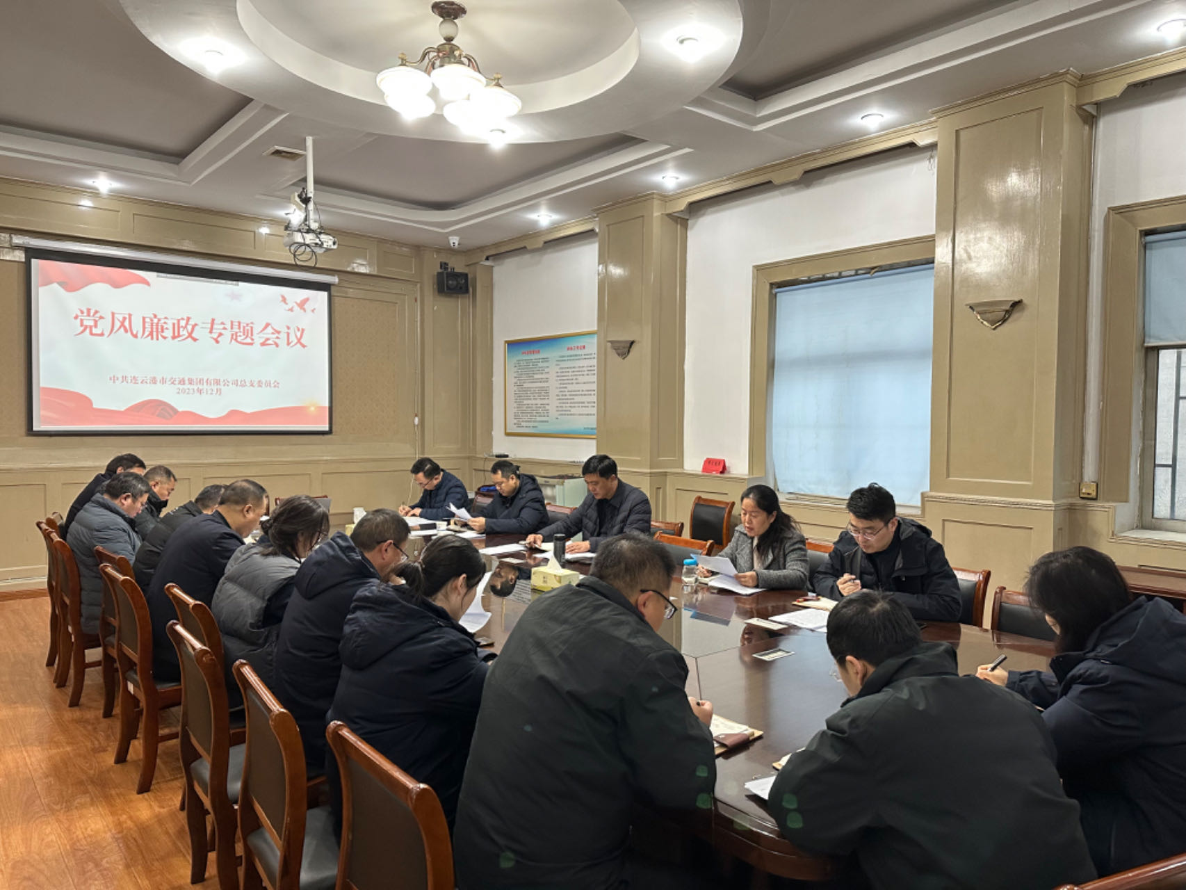 会上先后传达连云港市纪委监委《我市公开通报四起违反中央八项规定精神典型问题》和连云港市纪委监委党风政风监督室《2024年元旦、春节期间纠“四风”树新风工作提示》。