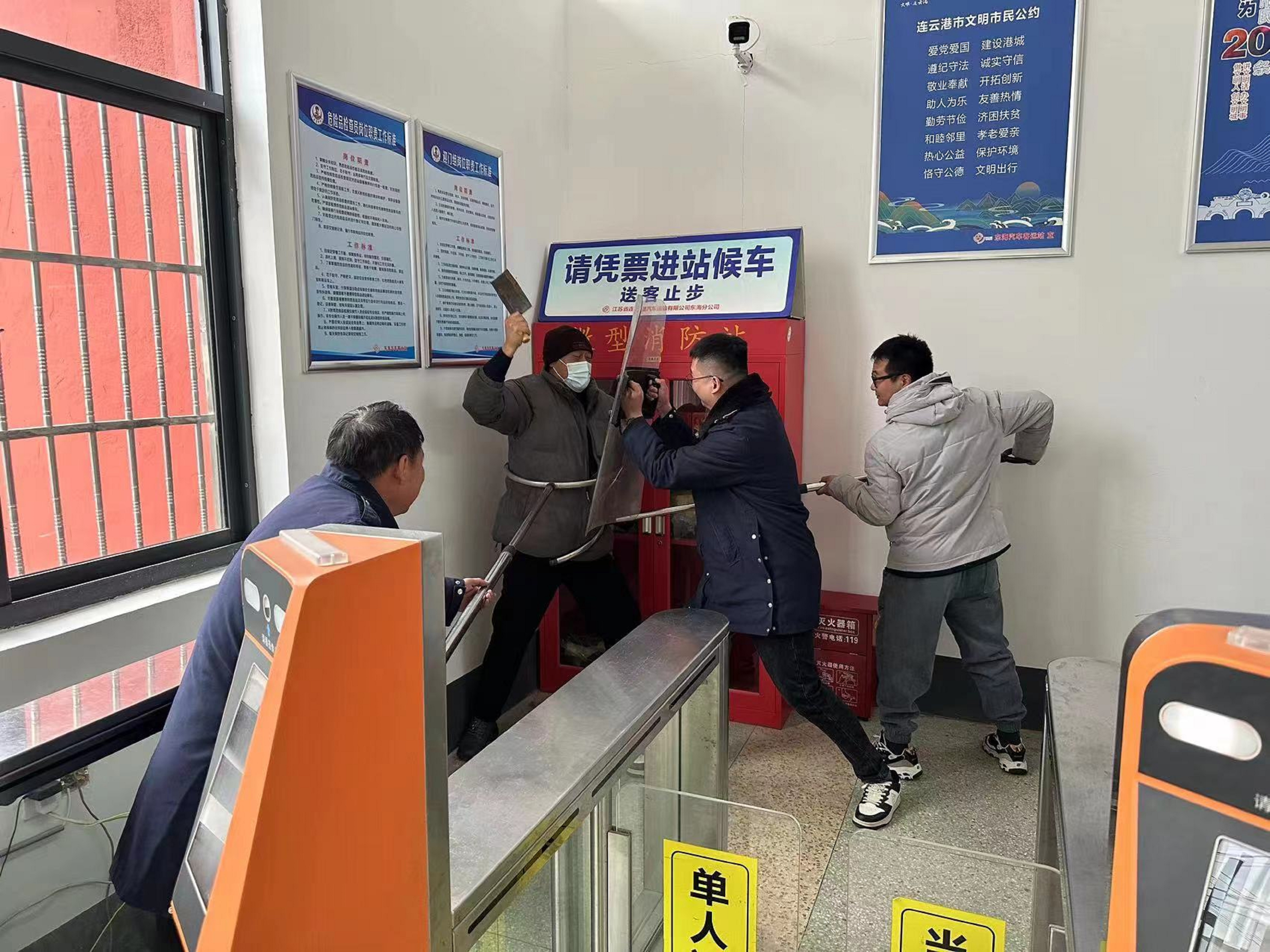 为切实提高汽车站的安保水平,确保旅客的安全出行,近日,东海县公安局内保股与连汽东海分公司联合在候车室进行反恐防恐演练。
