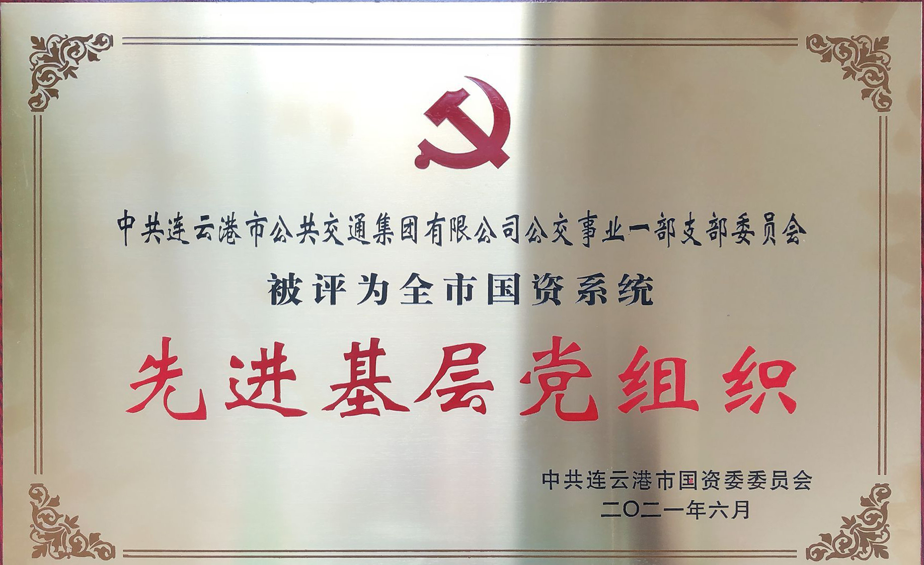 6月23日,在党的百年华诞即将到来之际,公交完美app最新版下载,完美(中国)公交事业一部党支部被评为全市国资系统“先进基层党组织”荣誉称号。