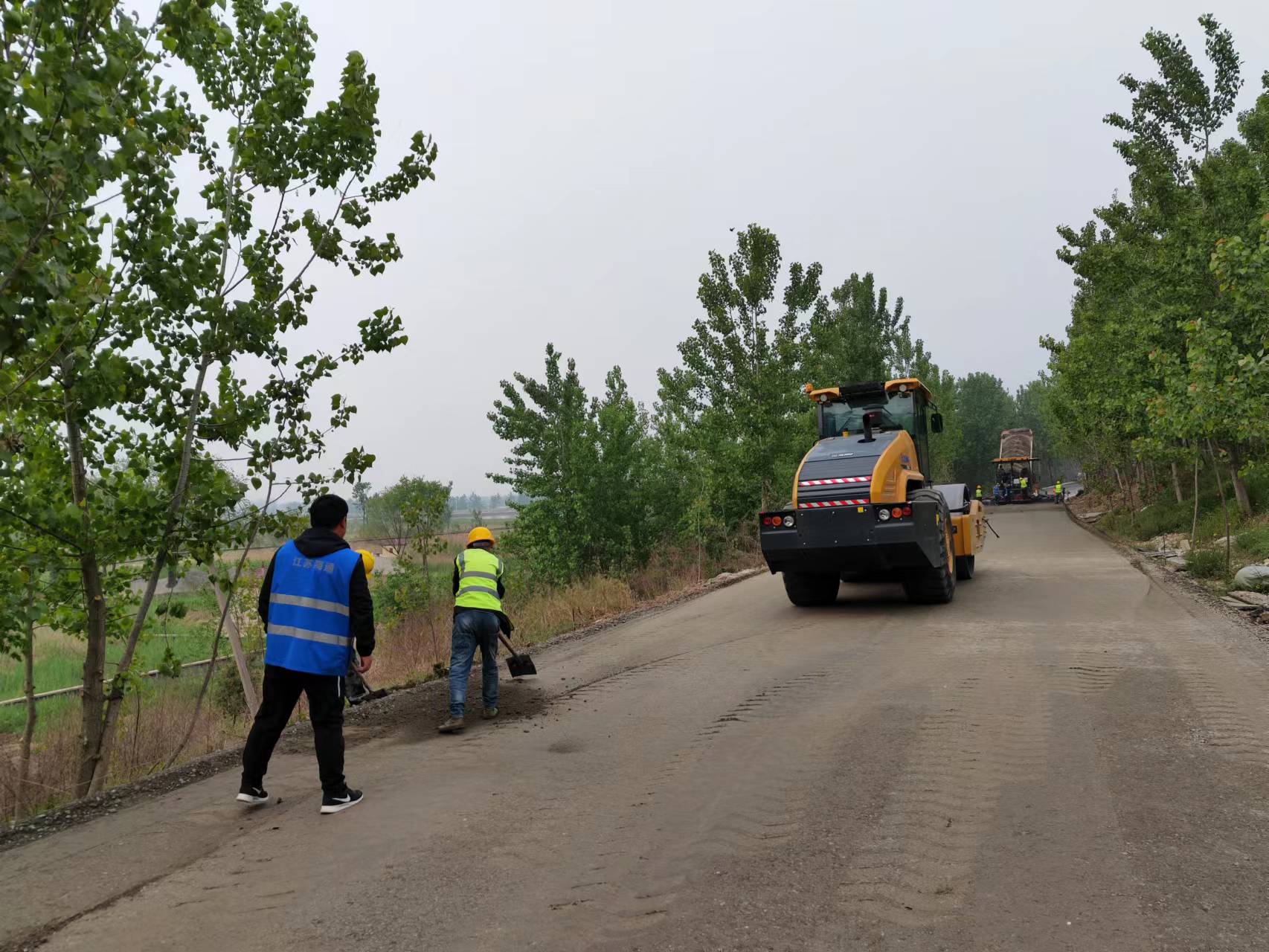 在新沭河堤顶路提标工程,目前进行沥青路面摊铺施工,通仁分公司为抢抓进度,安排党员带头进行现场施工,加班加点,歇人不歇机,把握施工黄金季。
