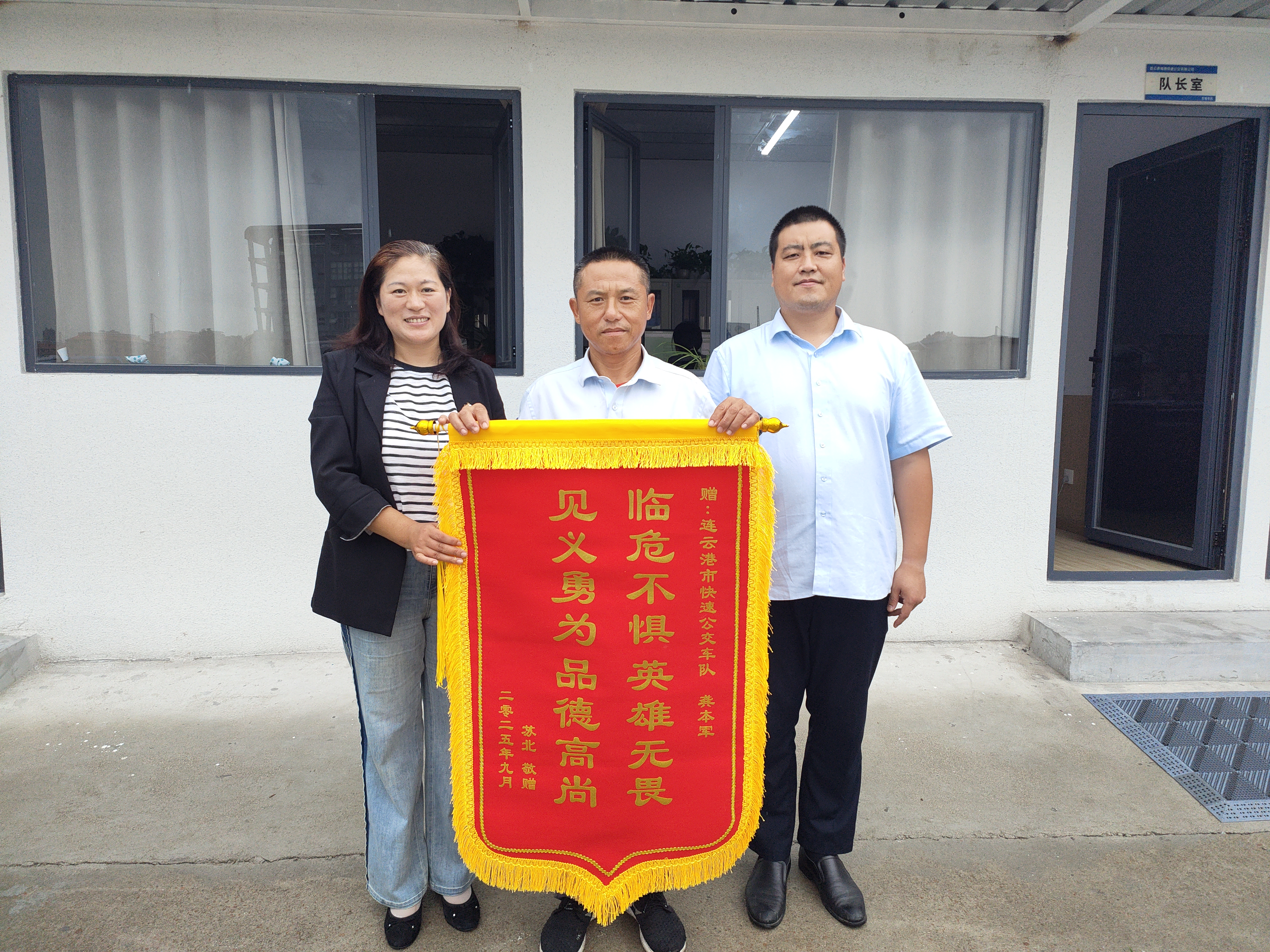 8月19日是快速公交公司东城车队B12线驾驶员龚本军难得的休息日,早晨龚本军在云山水库跑步时,救下了一名落水女子,正是眼前这位送锦旗的苏女士。徐鹏连忙邀请苏女士到办公室就坐,苏女士难掩激动。事发当天,苏女士正在云山水库边洗衣服,见岸边水浅且清澈,便想下水踩水,却因青苔湿滑,不慎失足跌入水中。在此危急时刻,正在岸边跑步的龚本军发现有人在水里拼命挣扎,纵身跃入水中。水中的苏女士如同抓住了“救命稻草”,紧紧抱住龚本军,这反而给救援带来阻碍,导致龚本军呛了好几口水,龚本军只得一遍遍的对苏女士说:“不要怕,你放松,放松,我来救你,听我的!”在龚本军一遍一遍的安抚下,苏女士终于放松下来问道:“我要怎么配合你?”龚本军说:“别害怕,别害怕,把手伸直,这样就能慢慢浮起来。”苏女士依言照做,身体果然渐渐上浮,龚本军趁机托住她,奋力将其托举上岸。在岸边一位大姨奋力的拖拽下,成功上岸,脱离险情。