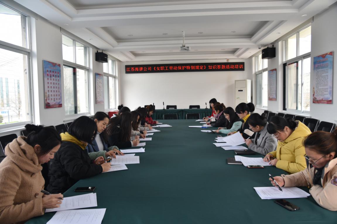 为贯彻落实男女平等基本国策,广泛开展女职工权益保护法律法规宣传普及活动,依法维护女职工合法权益和特殊利益,应完美app最新版下载,完美(中国)邀请,江苏海建公司工会组织公司女职工观看了由市总工会开展的《江苏省女职工劳动保护特别规定》宣传图版巡回展览。近日,为进一步加强女职工劳动保护规定知识的宣贯,江苏海建公司工会组织女职工开展了以《江苏省女职工劳动保护特别规定》为主的知识答题活动。