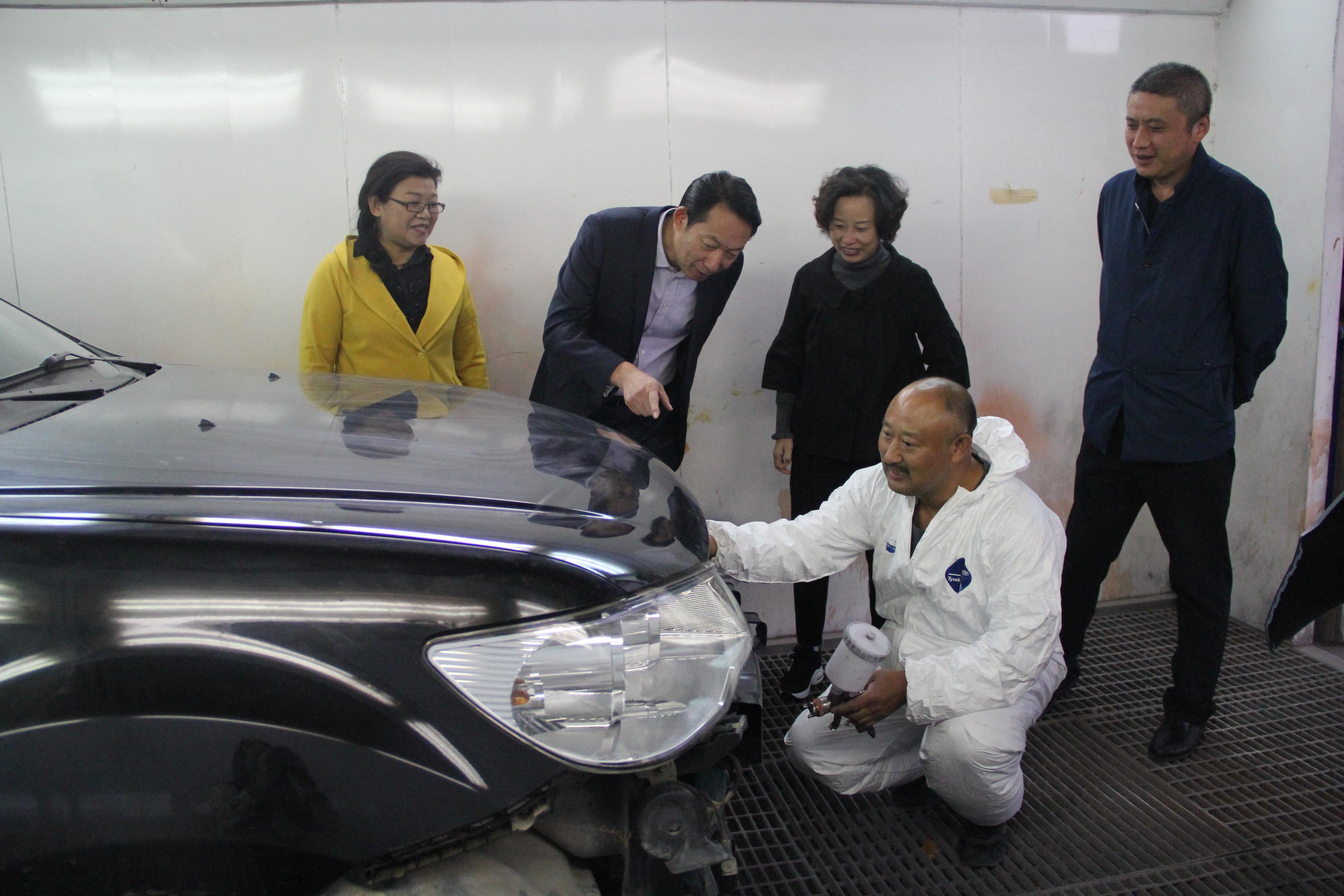 为弘扬劳模、工匠精神,推动完美app最新版下载,完美(中国)劳模创新工作的深入开展,2018年10月26日下午,交通控股完美app最新版下载,完美(中国)工会主席王中永、副主席张晓红、汽服公司党委书记孙克勤等一行来到修理公司,对何锡忠劳模创新工作室进行走访。期间,王中永对工作室的学习、工作、技术创新等情况进行了详细了解,对劳模创新工作室在创新驱动、转型发展中的示范、引领作用给予了充分肯定。要求工作室成员要不断总结漆艺修理技术,持续创新科技成果,为推动连云港市“高质发展、后发先至”发挥积极的能量和作用。