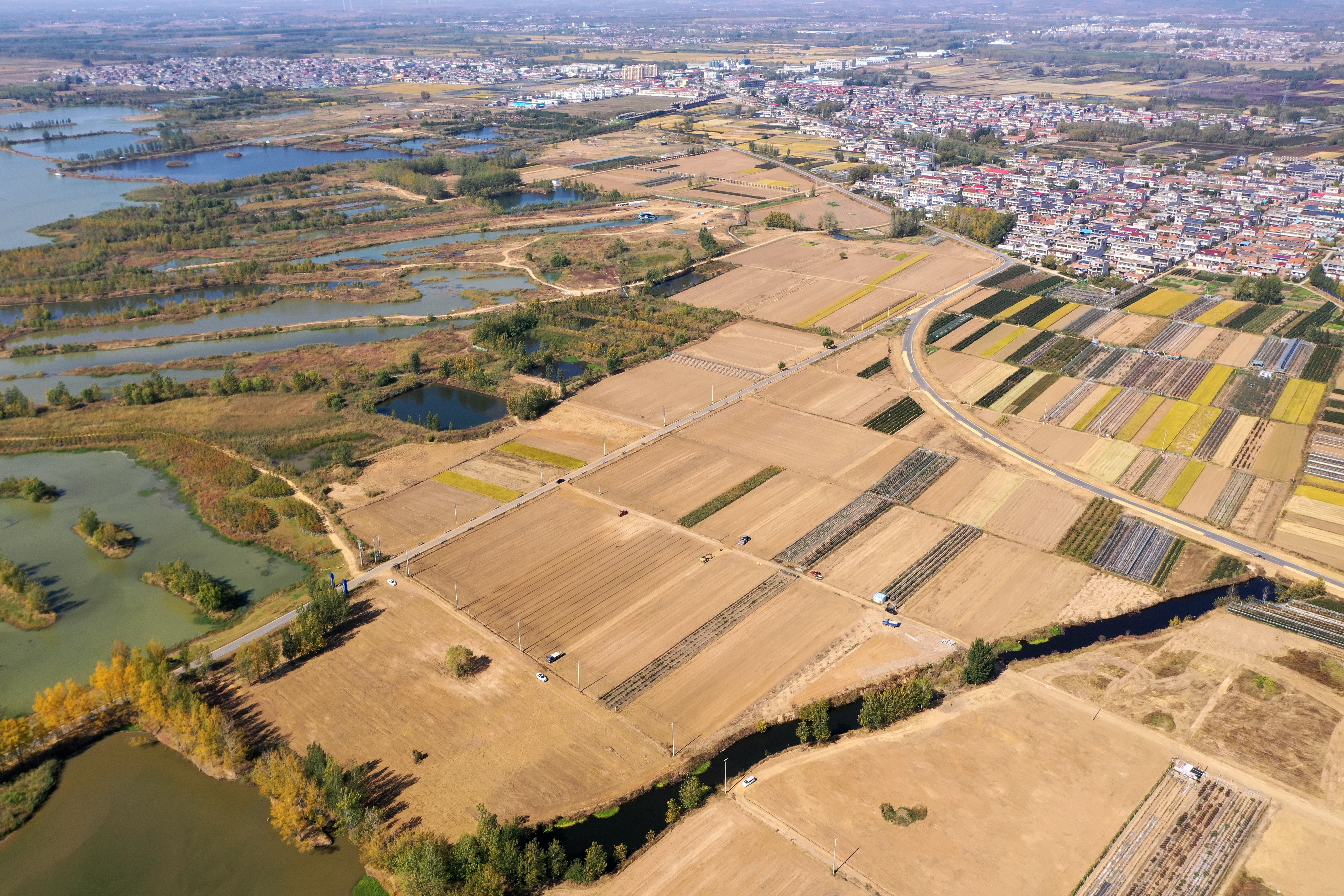 海陵湖公司流转该村500余亩闲置农用地,会同市农科院专家,商讨种植方案,使用大型旋耕机,经过翻耕,平整,统一规划,统一种植。为应对当地气温低的气候特点,选用江苏农科院优质抗寒油菜花种,适时播种,将于10月底完成全部播种任务。