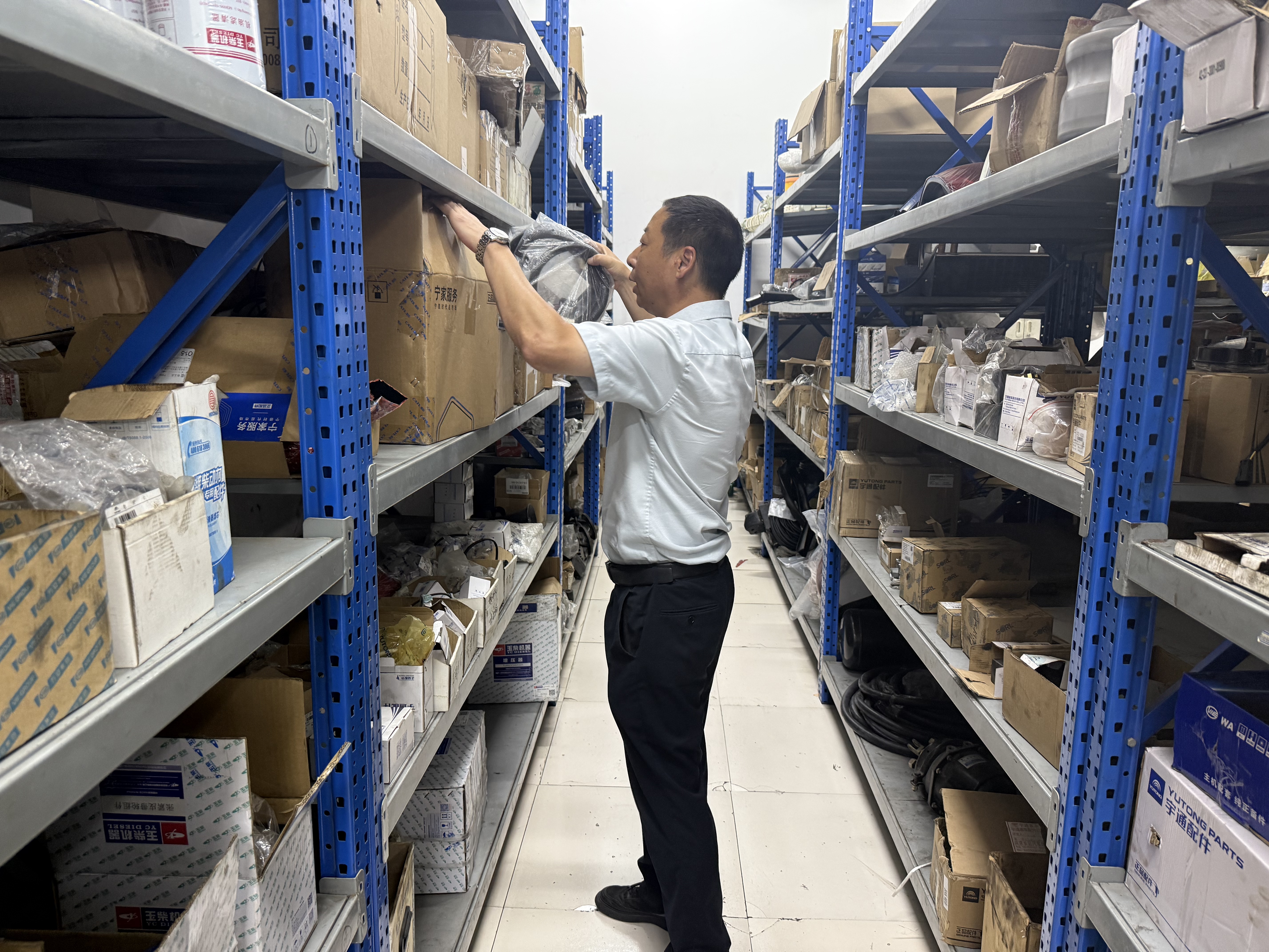 客户中心二十八年的工作经历,让耿玉兵养成了“事事有回应”的习惯,也让他更懂“效率”对公交运营的重要性。上任首周,他就针对运营公司反映的“常规故障维修等待久”问题,带着车间班组长重新梳理流程:将配件仓库里常用的刹车片、滤芯等零件,按车型分类摆放在车间旁的临时储物区,方便修理工去取件;同时建立“紧急维修绿色通道”,早晚高峰时段的故障车辆,优先安排检修。“以前修一辆车的刹车系统,光等零件就得半小时,现在10分钟就能拿到,效率提上去了,驾驶员也少着急。”机修班组长张善强说。