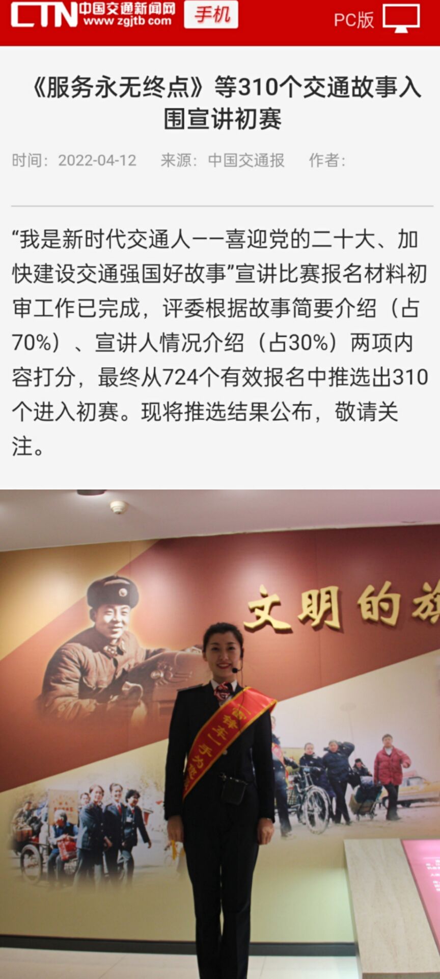 近日,从中国交通报传来好消息,新浦汽车总站李雨轩入围“我是新时代交通人——喜迎党的二十大、加快建设交通强国好故事”宣讲初赛,成为连云港市唯一入选人。