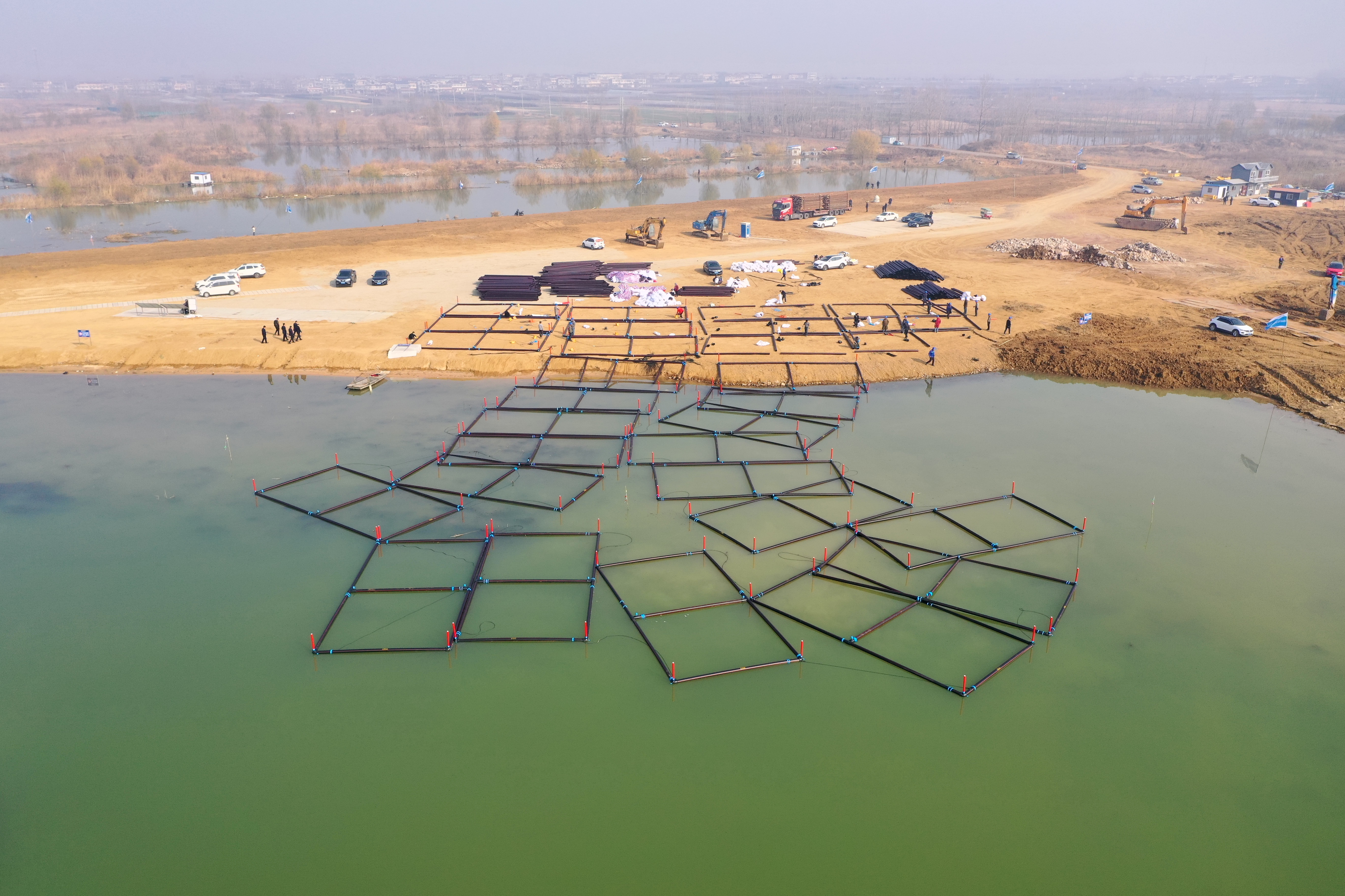 近日,随着最后一口生态养殖网箱的顺利下水,石梁河水库生态养殖示范区二期600个网箱完成了全部拼装。