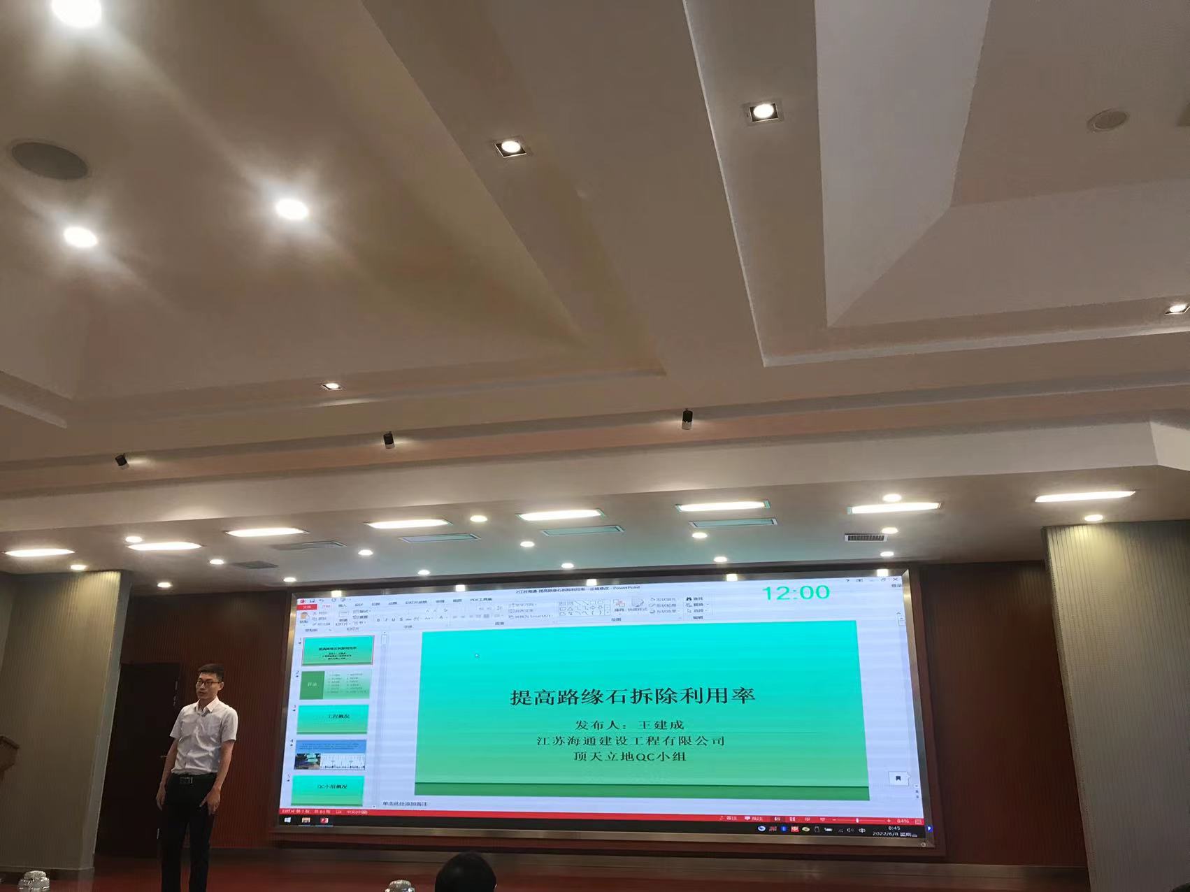 近日,江苏省交通企业协会在南京召开了2022年度江苏省交通运输行业优秀QC成果发布会,会上颁发了2022年江苏省交通行业优秀质量管理小组奖状,同时对择优选出的QC成果现场发布进行了评奖。江苏海建公司顶天立地QC小组和金海二桥QC小组被评为2022年江苏省交通行业优秀质量管理小组。顶天立地QC小组及成果《提高路缘石拆除利用率》获得2022年优秀QC小组活动成果二等奖。