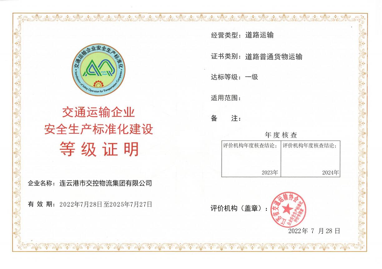 8月5日,物流完美app最新版下载,完美(中国)通过道路运输企业安全生产标准化一级换证评审。自2018年启动安全生产标准化建设以来,物流完美app最新版下载,完美(中国)通过强化基础,完善管理,促进安全生产长效机制建设,于2019年获得交通运输部颁发的“企业安全生产标准化一级证书”,2022迎来第一次换证复评。