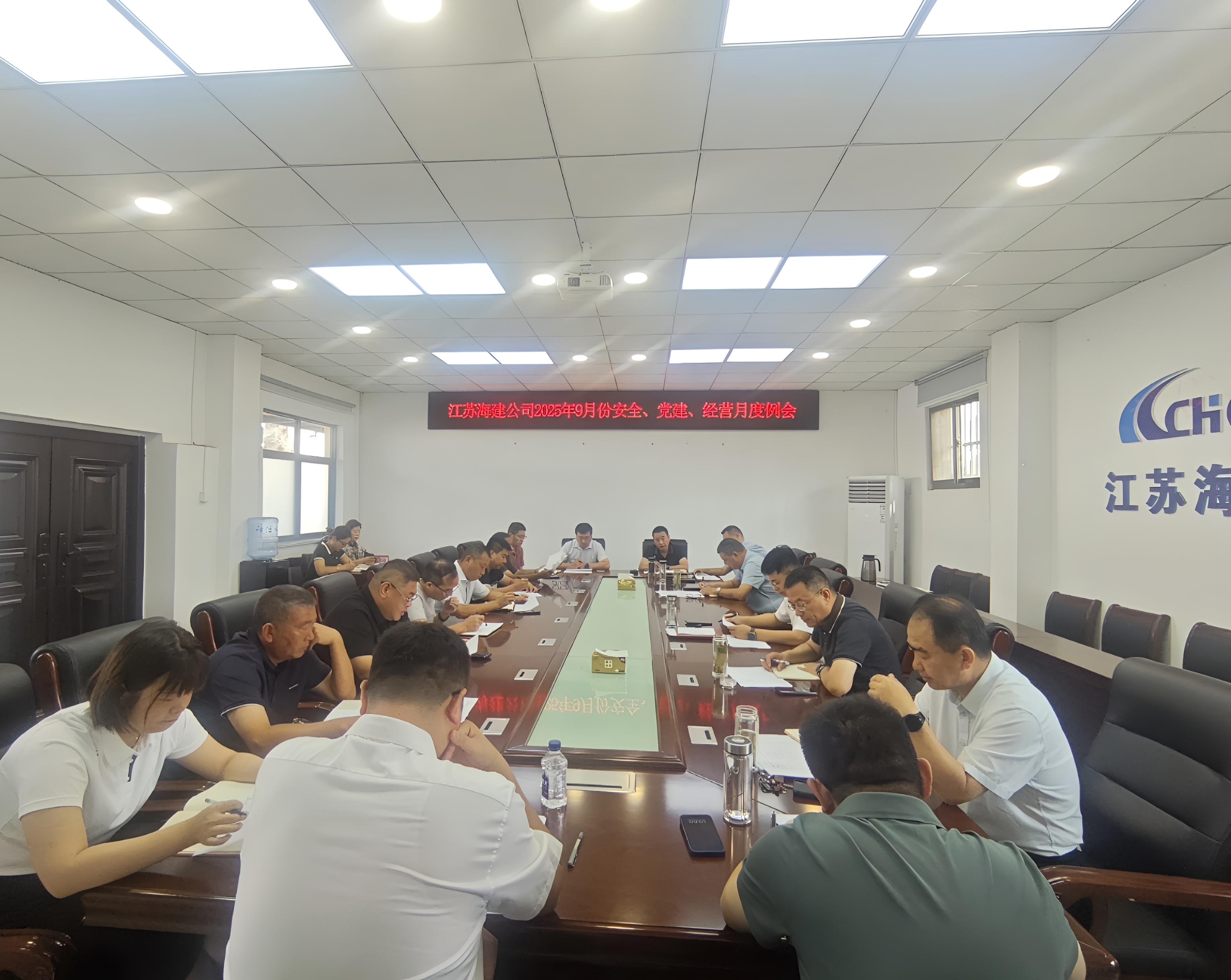 9月1日,海建公司在一楼会议室召开9月份安全、党建、经营月度例会,会议围绕“攻坚三季度,大干四季度”总体要求,研究推进重点工作,部署本月任务。公司领导班子成员、各单位、部门主要负责人参会,会议由总经理徐其翔主持,党委书记、董事长于振国作总结讲话。