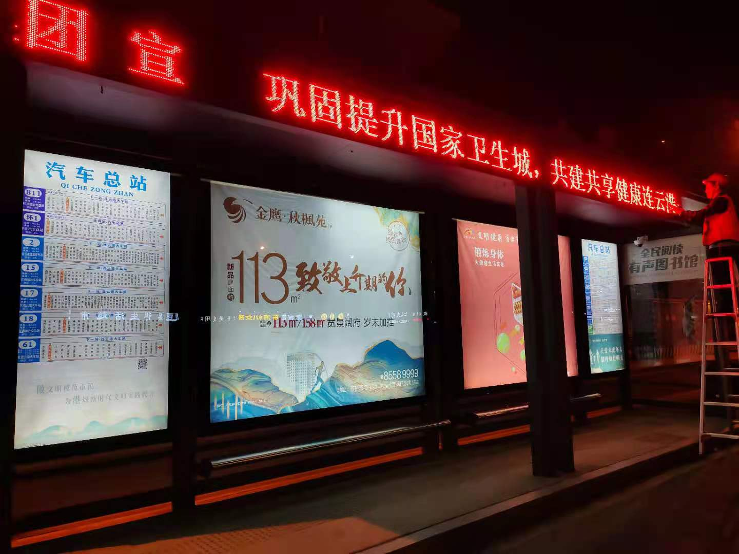 近日,交通完美app最新版下载,完美(中国)充分利用自身媒体资源,在市区主要路段的400余个公交站亭的LED条屏投放宣传标语,基本覆盖了市区及连云区主要道路。宣传条屏每晚循环播放上万余次,有效强化了对我市卫生城市常态化建设工作的宣传力度。